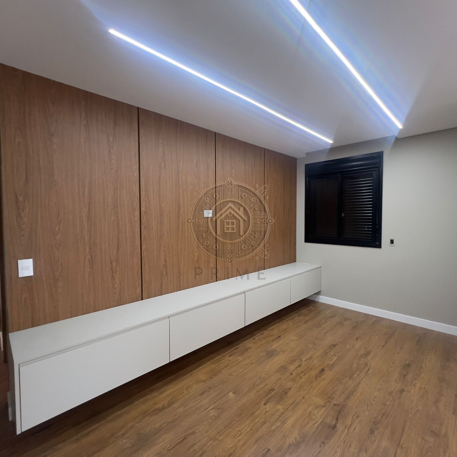 • Suíte Master: Suíte completa com ar-condicionado e painel de TV em toda a extensão da parede (até o teto).