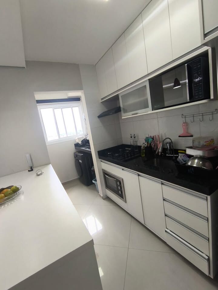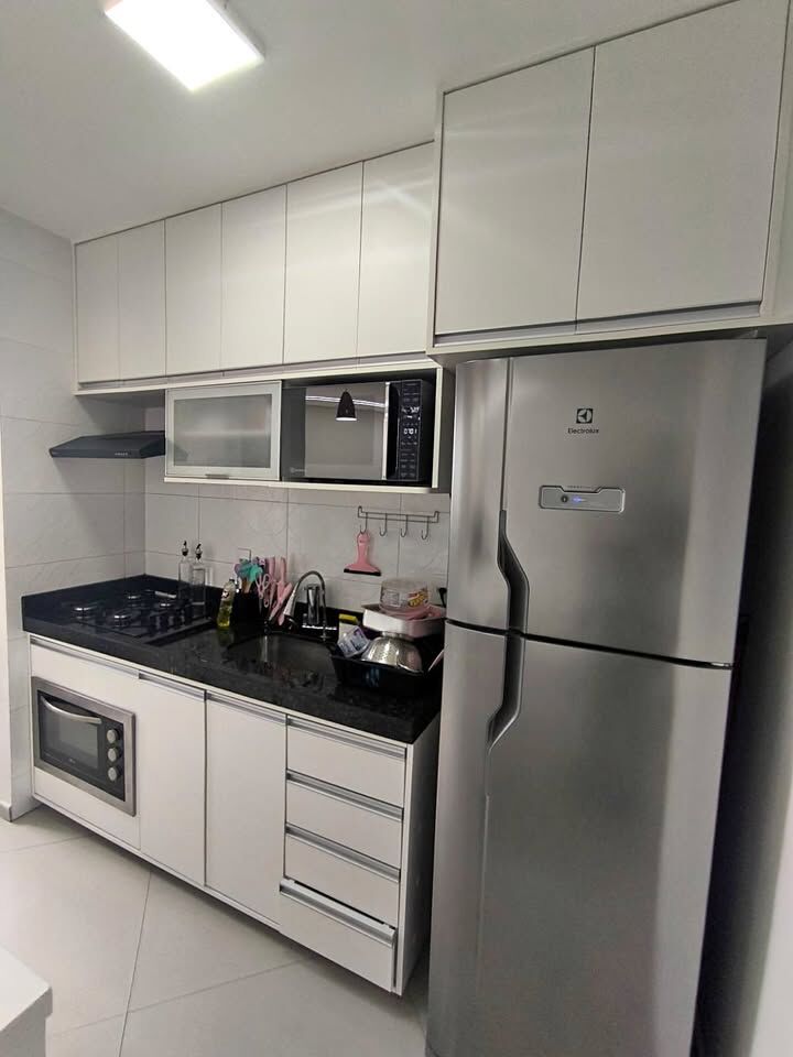 O condomínio é completo e dispõe de diversas opções de lazer e conveniência, incluindo salão de festas com churrasqueira privativa, 2 churrasqueiras extras disponíveis para uso, quadra poliesportiva, mercadinho 24 horas, salão de festas, sala de jogos, academia e playground.