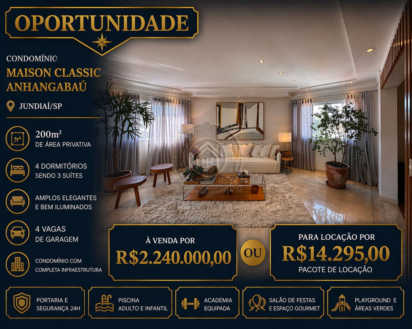 APARTAMENTO ALTO PADRÃO À VENDA E LOCAÇÃO – 200m² | 3 SUÍTES | EDIFÍCIO MAISON CLASSIC – JUNDIAÍ/SP